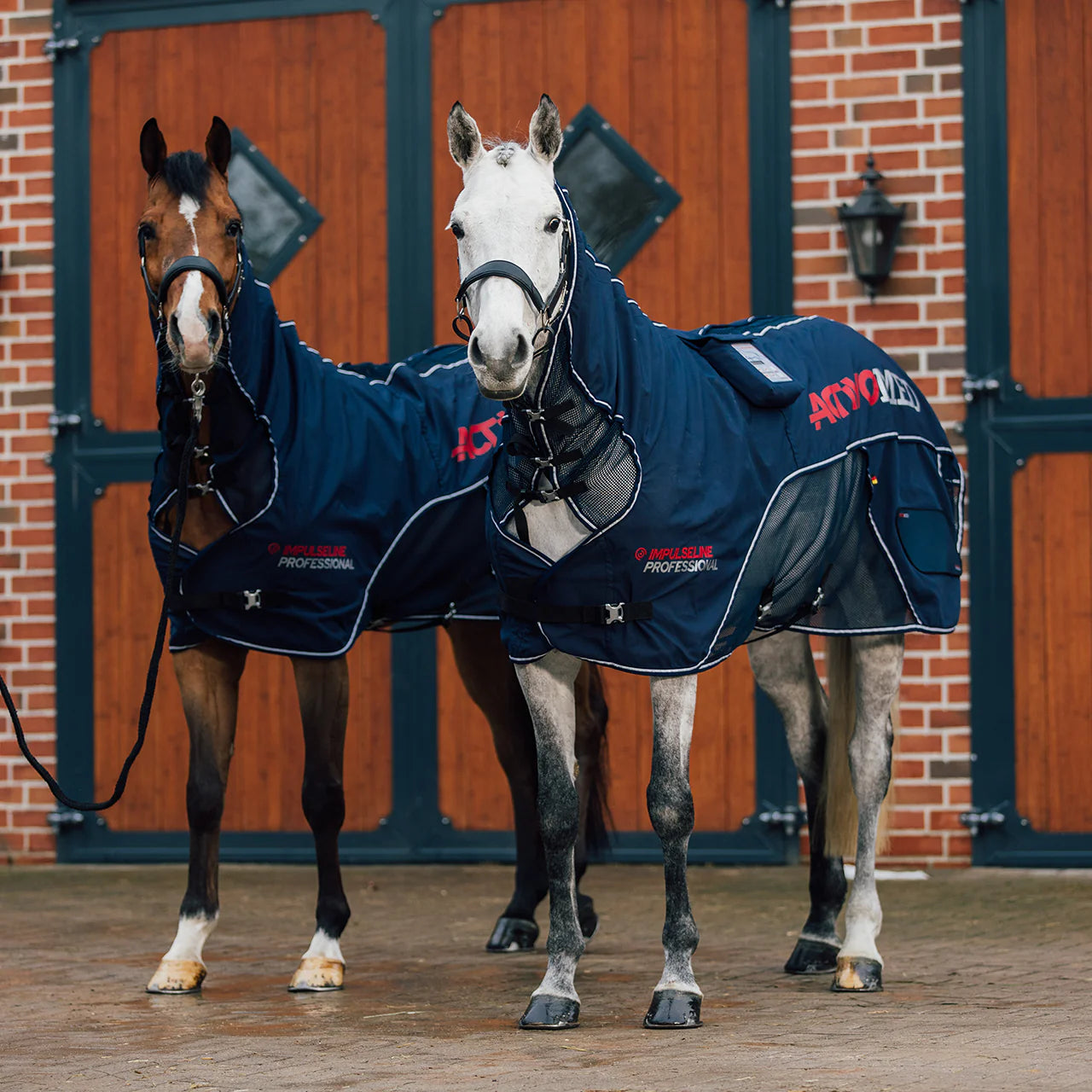 IMPULSELINE Professional-dekkenet er et PEMF-terapidekken med nakkedel og en integrert massasjefunksjon. Dekkenet er utstyrt med fjorten magnetfeltspoler/applikatorer plassert langs begge sider av ryggraden – fra nakkeknølen over skuldrene og helt bak til krysset og hasene. Behandlingen inkluderer både skuldre og haser, noe som gir en mer helhetlig og målrettet terapi for hele hesten.